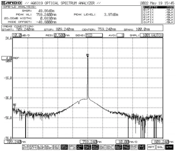 Diodo láser DFB de 760 nm para detector de oxígeno